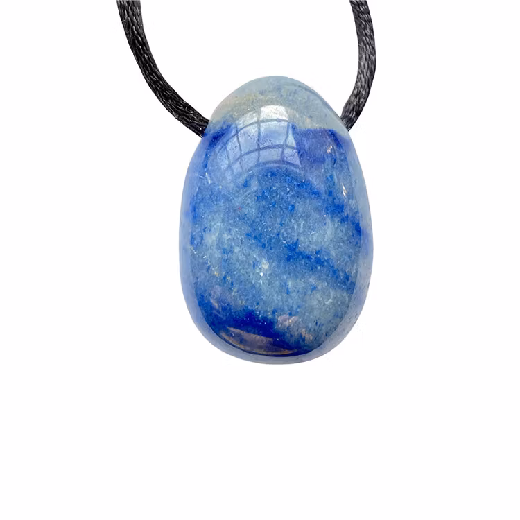 Ett hängsmycke av blå kvarts i extra fin AA-kvalitet från Brasilien, säljs tillsammans med ett svart satinsnöre.