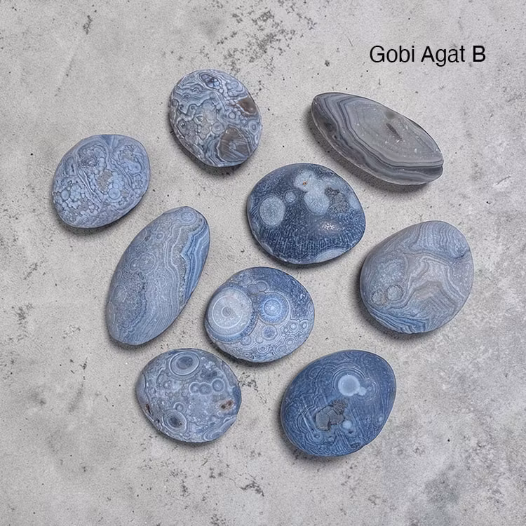 Varje handsten i gobiagat är unik i färg, form och mönster, vilket gör varje sten personlig och skapad av naturens eget långsamma och tålmodiga arbete.