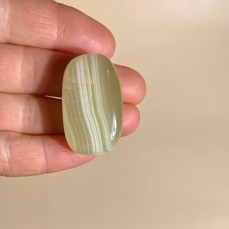 En trumlad sten av grön Aragonit från Pakistan. Önskas specifik färg, skriv i meddelande-rutan i kassan!