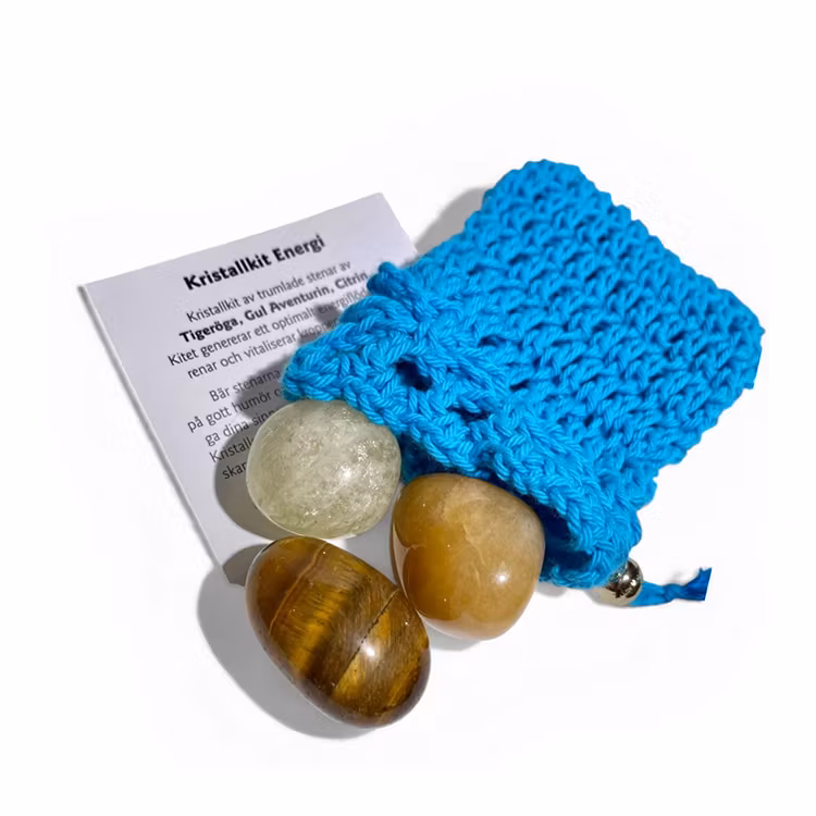 Detta kristallkit består av tumlade stenar av tigeröga, gul aventurin och citrin, en varm och stärkande kombination för dig som vill bjuda in mer energi, glädje och positivt fokus i vardagen. Tillsammans sägs kristallerna skapa ett renande och vitaliserande energiflöde som stärker kroppens energifält och hjälper dig att känna dig klarare, lättare och mer upplyft.