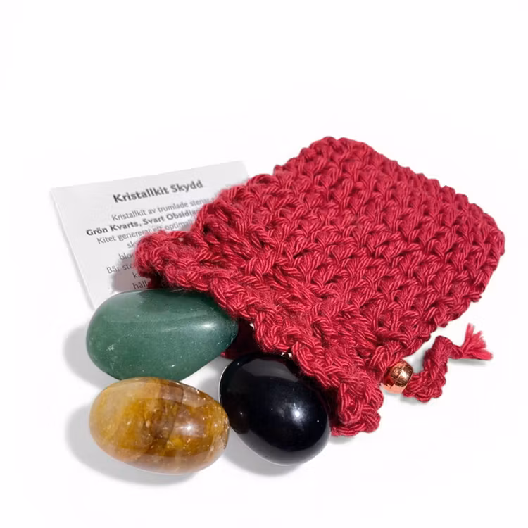 Detta kit passar dig som vill bära med dig kristaller dagligen som stöd för att känna dig mer centrerad, grundad och skyddad. Stenarna sägs kunna bidra till att motverka energiförlust, skapa ett starkare inre fokus och stötta emotionell läkning. Många använder dem också med intentionen att skydda mot negativa vibrationer och elektromagnetiska störningar.
